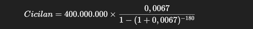 Maka cicilan bulanan dapat dihitung: